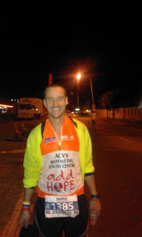 My brother, doing his first ever Iron Man was toward the back of the field and so we could spot him when he came past our point. He looked so fresh though, that I thought of slapping him! Unfortunately I was not able to see him finish, but the rest of the family was there and he was treated to the famous redcarpet treatment and to hear those words they say at the end of “Iron Kids” – you know “Your and Iron Kid son!”