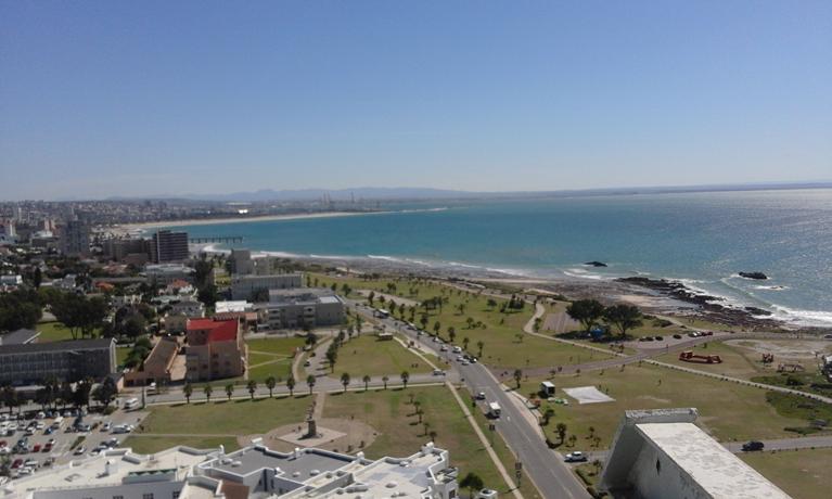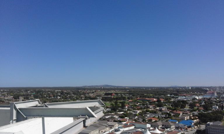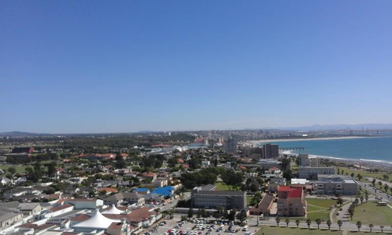 While I was not involved in deploying the temporary repeater on the Radison roof, I was asked to help remove it. Pictured to the right is a look into the box (for those iof you who are into that sort of thing) and below are some event photos, photos of the beach front and the Port Elizabeth skyline as seen from way up there!